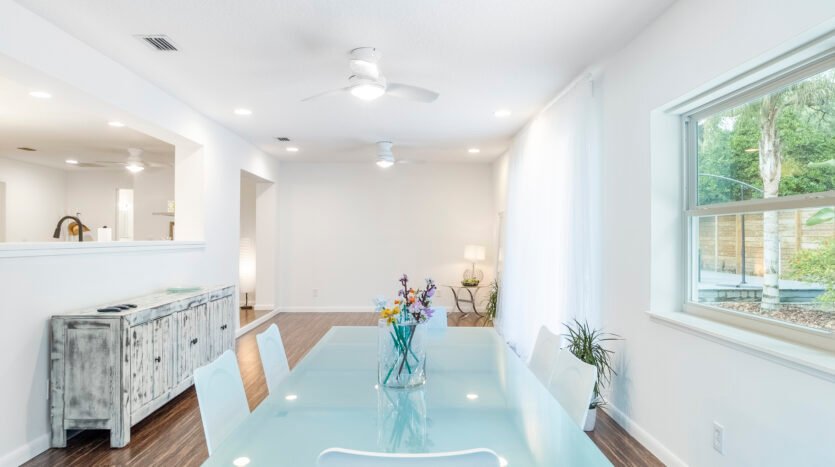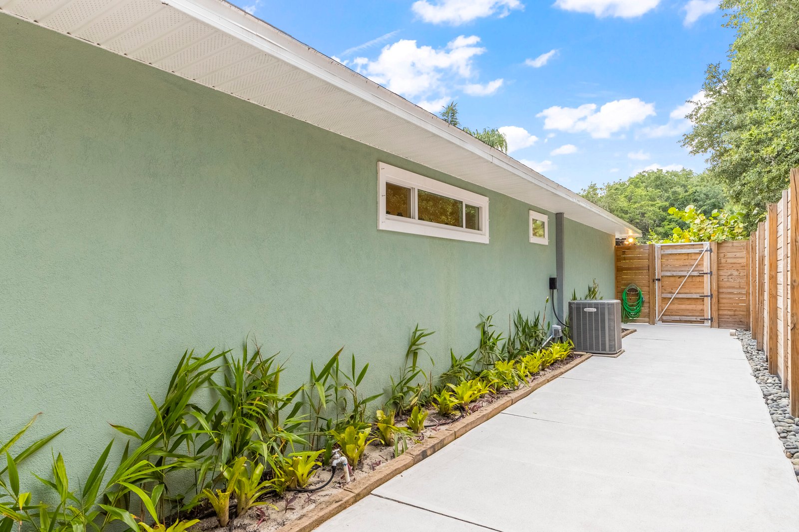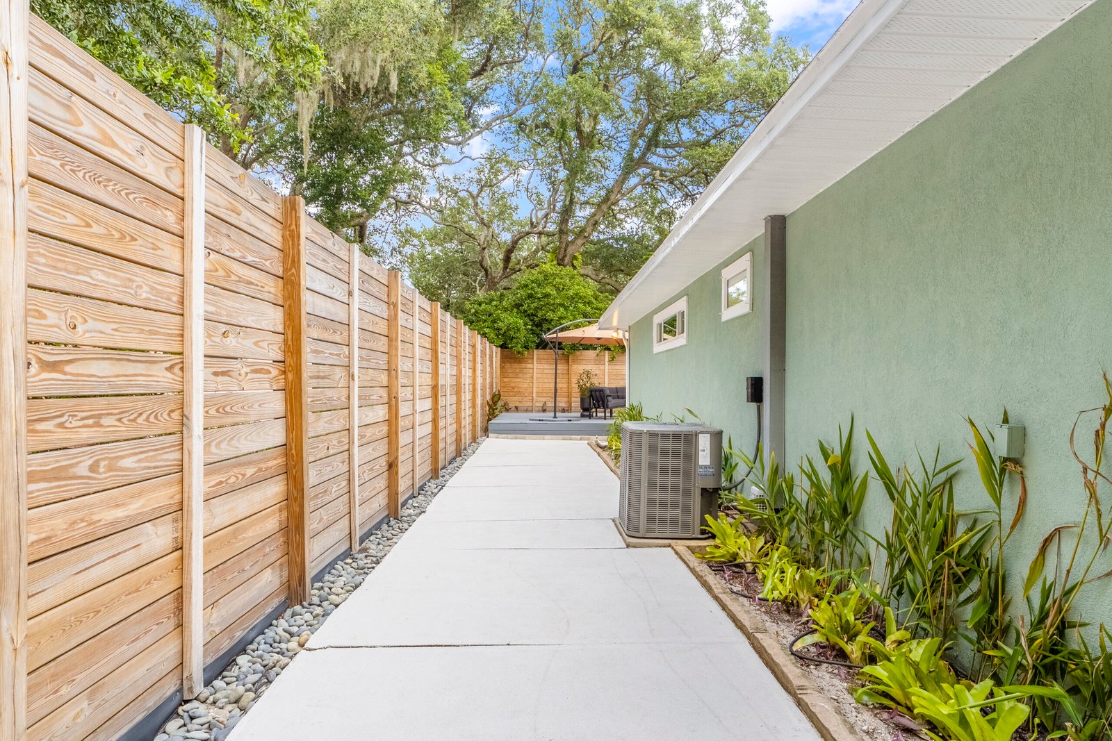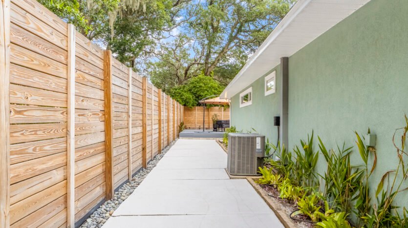 REDUCED – Immaculate, 3-bedroom, 3 Full bath concrete block home in the much sought after Woodland Subdivision (St. Augustine Beach) with no HOA. If you are looking for beach living, look no further. This beautiful modern home welcomes you with a stunning display of native plants, flowers, trees, modern landscaping, and majestic palm trees. Enjoy the professionally landscaped gardens, easy clean concrete patio and back deck for entertaining with friends. This spacious home has over 2,000 sq feet of living space with abundant natural light from 5 solar tubes. It is all one level with no stairs. Freshly painted inside and out, newer Energy Star vinyl. Bring your pets as it has a customed designed 8-foot-tall modern fence with duo access gates for privacy and wraps around the entire back yard. Back deck offers plenty of space for entertaining and newly added power outlets. Beach access, YMCA, Beach Pier, restaurants, Anastasia State Park and Ron Parker Park with pickleball, tennis and playground are all within walking distance. The beach access at the end of Pope Rd is vehicle free. The HVAC is under a transferable maintenance program and the condenser fan motor was replaced 6/5/2025. No flood insurance is required as it is in Flood Zone X. This home is equipped with a full set of hurricane fabric panels for ease of mind during hurricane season. Rain Bird irrigation sprinkler system with wireless rain/frost sensor and privately owned pump and drip lines hooked up to a shared artesian well. The garage is equipped with a 240 amp outlet which can be used for your electric vehicle charger, welder, freezer, or specialty woodworking power tools. There are too many features to mention. Please look under “documents” for additional features or I can email them to you.