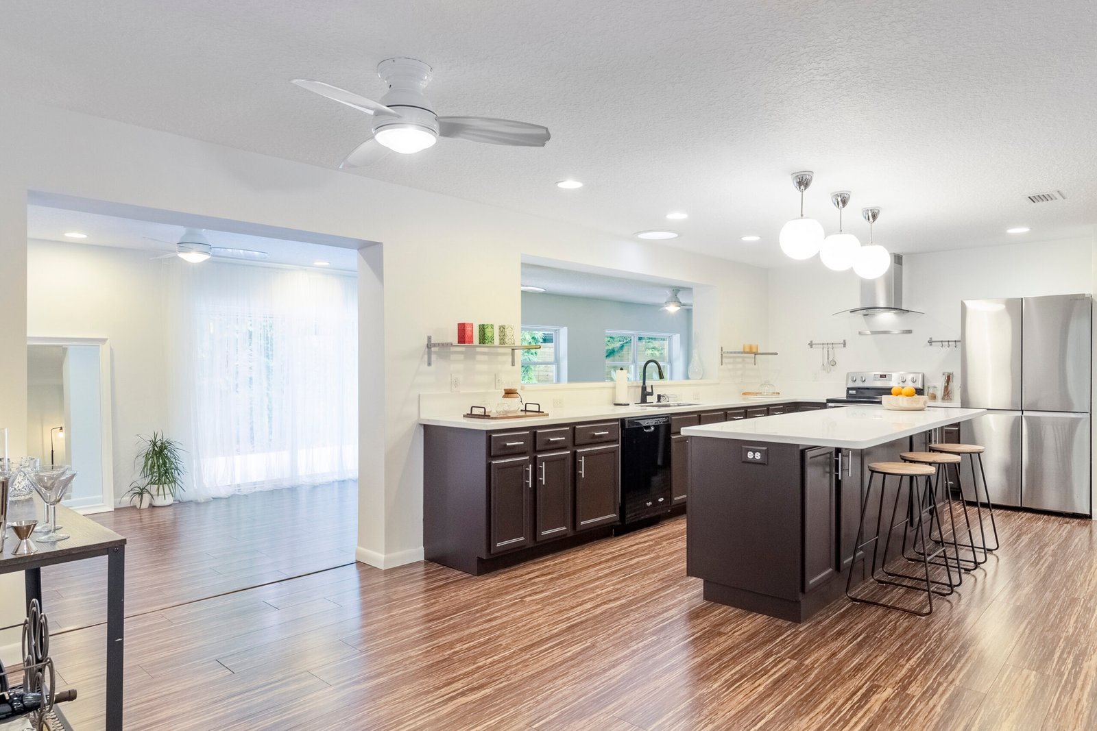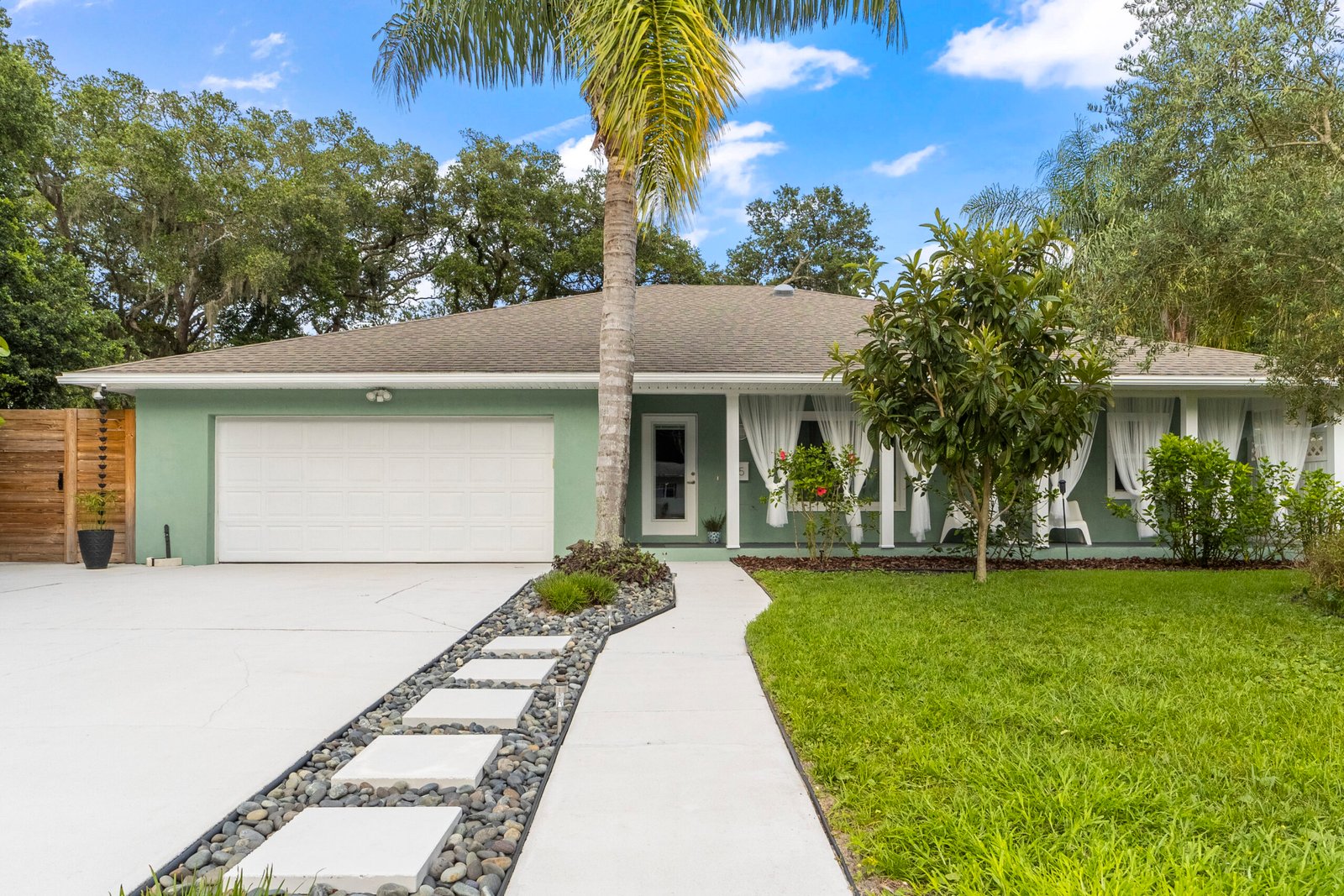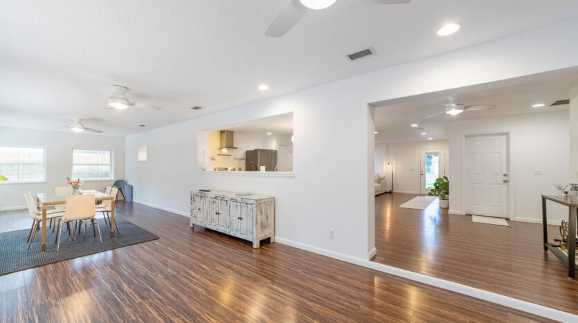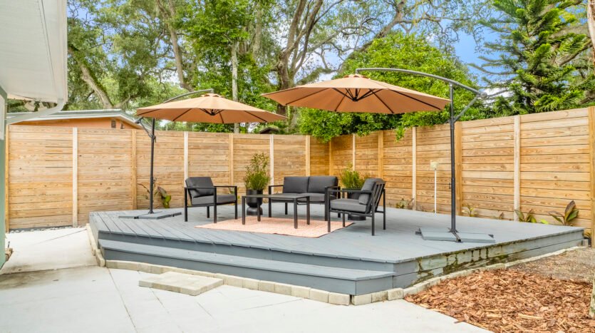 REDUCED – Immaculate, 3-bedroom, 3 Full bath concrete block home in the much sought after Woodland Subdivision (St. Augustine Beach) with no HOA. If you are looking for beach living, look no further. This beautiful modern home welcomes you with a stunning display of native plants, flowers, trees, modern landscaping, and majestic palm trees. Enjoy the professionally landscaped gardens, easy clean concrete patio and back deck for entertaining with friends. This spacious home has over 2,000 sq feet of living space with abundant natural light from 5 solar tubes. It is all one level with no stairs. Freshly painted inside and out, newer Energy Star vinyl. Bring your pets as it has a customed designed 8-foot-tall modern fence with duo access gates for privacy and wraps around the entire back yard. Back deck offers plenty of space for entertaining and newly added power outlets. Beach access, YMCA, Beach Pier, restaurants, Anastasia State Park and Ron Parker Park with pickleball, tennis and playground are all within walking distance. The beach access at the end of Pope Rd is vehicle free. The HVAC is under a transferable maintenance program and the condenser fan motor was replaced 6/5/2025. No flood insurance is required as it is in Flood Zone X. This home is equipped with a full set of hurricane fabric panels for ease of mind during hurricane season. Rain Bird irrigation sprinkler system with wireless rain/frost sensor and privately owned pump and drip lines hooked up to a shared artesian well. The garage is equipped with a 240 amp outlet which can be used for your electric vehicle charger, welder, freezer, or specialty woodworking power tools. There are too many features to mention. Please look under “documents” for additional features or I can email them to you.